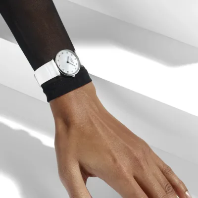 Bezvremena elegantna kolekcija La Grande Classique doživela je neverovatnu popularnost kada je 1992 prvi put predstavljena u svetu časovničarstva. Izuzetno tanko kućište minimalističkog dizajna postalo je must- have modni detalj za dame koje cene lepotu i kvalitet. La Grande Classique modeli privlače pažnju sedefastim MOP brojčanikom čije savršenstvo dizajna upotpunjuje 12 Top Wesselton dijamanata na indeksima. Brojčanik je zaštićen safir kristal staklom sa antirefleksnim premazom što pruža odličnu preglednost. Kućište ovog sata je od poliranog čelika u kombinaciji sa narukvicom od krokodilske kože koja daje završnu notu prefinjenosti i luksuza. švajcarski kvarcni mehanizam kalibra L420 garantuje preciznost i visoke performanse ovog modela.