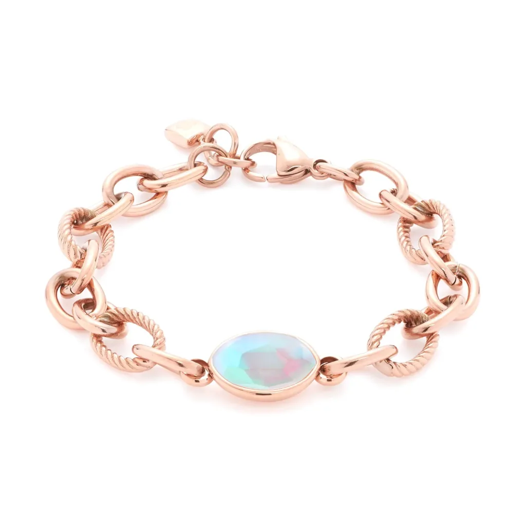 Ženska narukvica brenda Leonardo, iz kolekcije Misteriosso. Karakteriše je moderan dizajn u kombinaciji sa kristalom koji se prelama u nijanse zelene boje čime doprinosi atraktivnosti modela i čini ga pogodnim za svakodnevno nošenje.