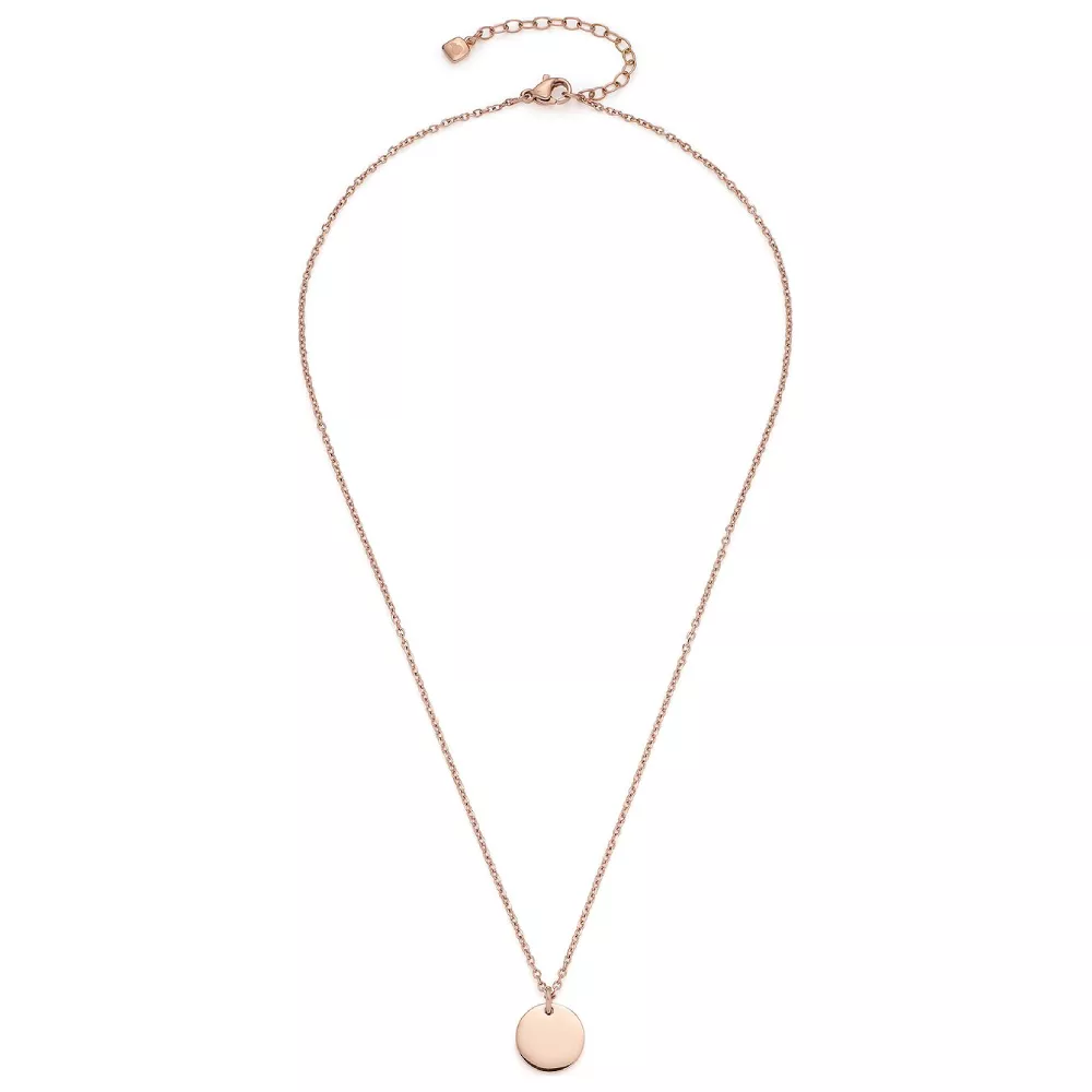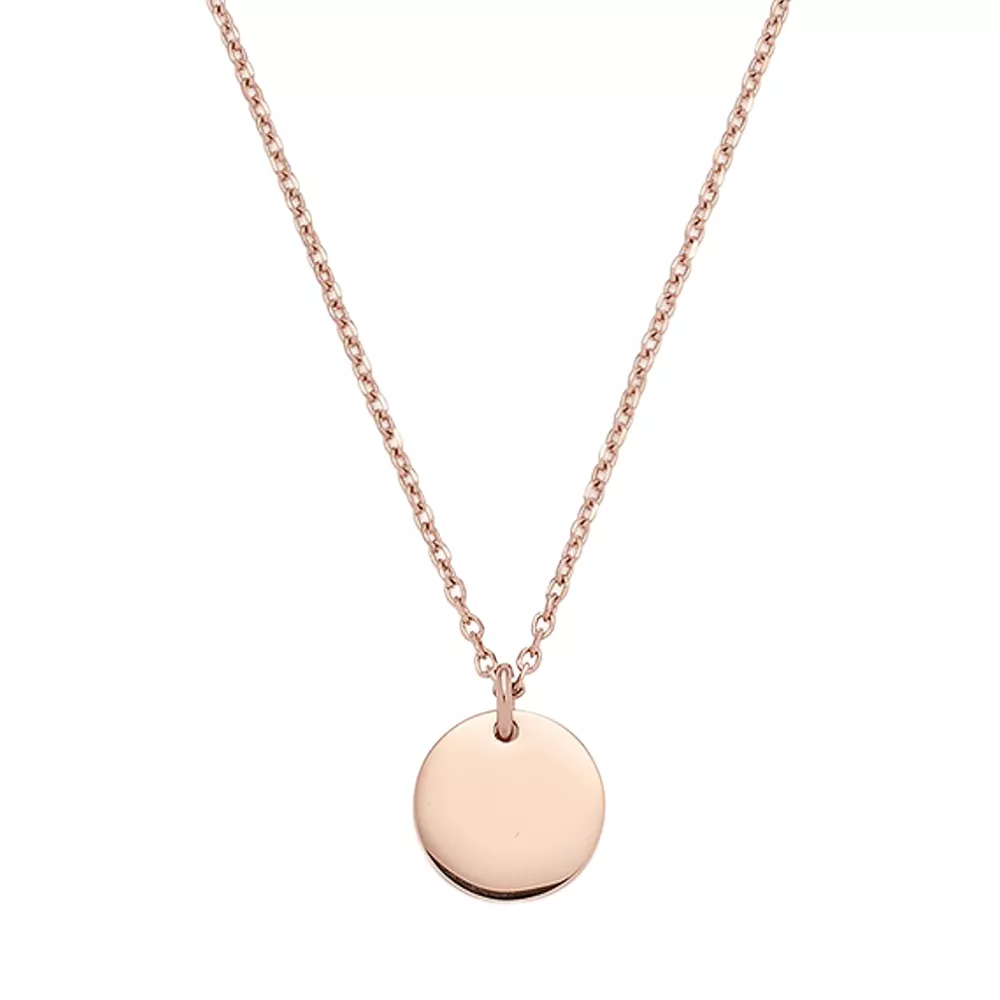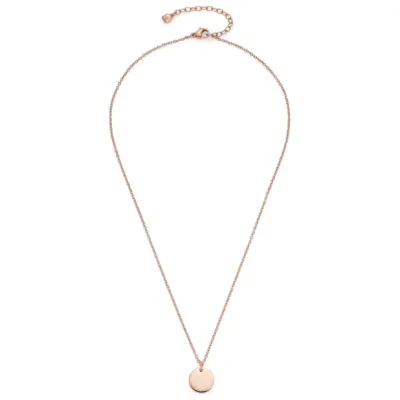 Ova ogrlica za dame, izrađena od nerđajućeg čelika presvučenog ružičastim zlatom, odiše modernom jednostavnošću. Okrugli privesak može se gravirati s obe strane, što ga čini savršenim za inicijale ili ličnu poruku. Fina ankera karika daje ogrlici suptilan i elegantan izgled, dok se zahvaljujući karabinjer kopči dužina može podesiti za savršeno pristajanje.