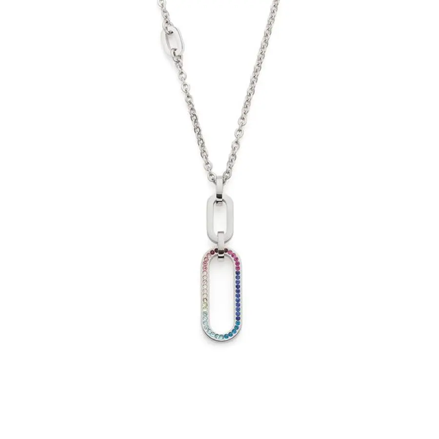 Ženska ogrlica brenda Leonardo. Izađena je od nerđajućeg čelika u srebrnoj boji.