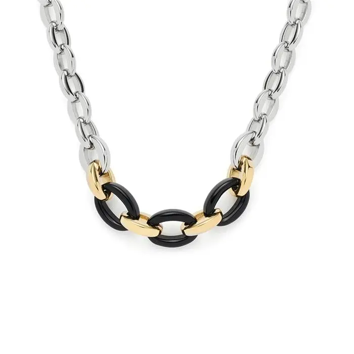 Leonardo ženska ogrlica izrađena od nerđajućeg čelika. Kombinacija srebrne, zlatne i crne nijanse čine ovaj komad efektnim u svim modnim kombinacijama.