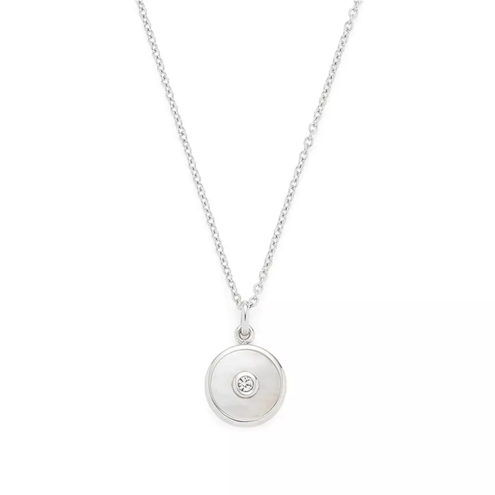 Ženska ogrlica brenda Leonardo od nerđajućeg čelika sa okruglim priveskom i kristalom u centru.