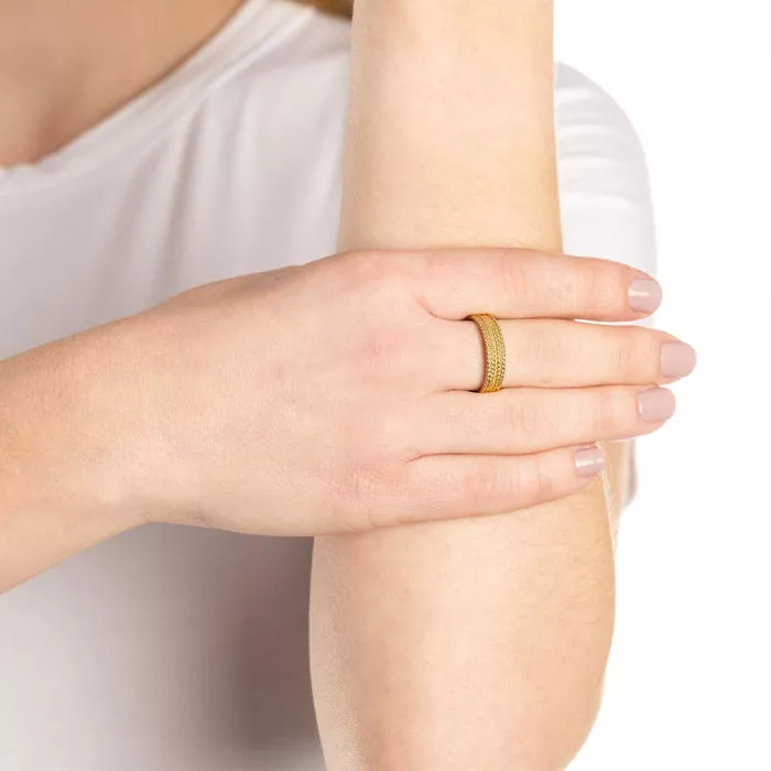 Ovaj prsten sa fino graviranom pletenicom savršen je za kombinovanje sa svim nakitom.