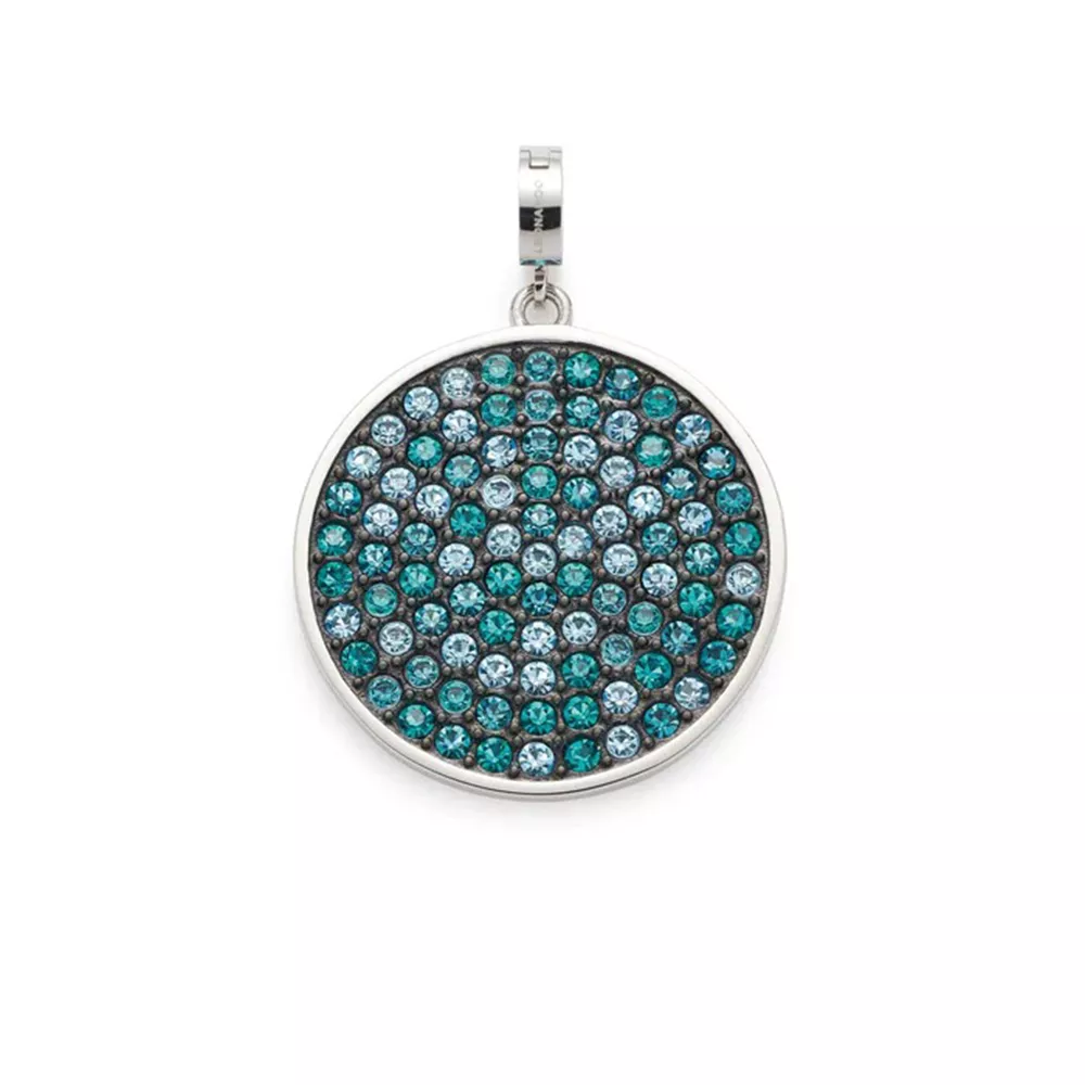 Ženski privezak brenda Leonardo sa nebesko plavim i azurnim kristalčićima u okruglom okviru.