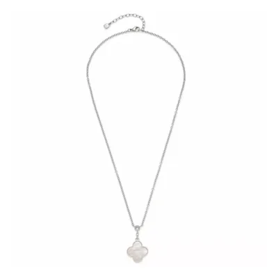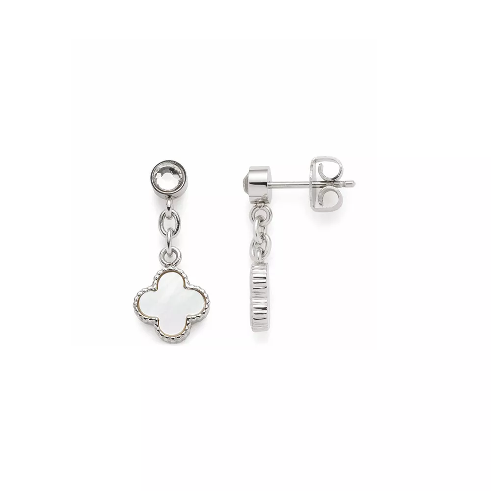 Kažu da ko otkrije detelinu sa četiri lista, blagosloven je srec´om, jer samo jedna od hiljadu detelina ima četiri lista. List srec´ne deteline je pričvršc´en u stilizovanom obliku priveska na Leonardo minđušama. Beli sedef prekriva celu površinu ovog privezka i okružen je fino urađenom ivicom.