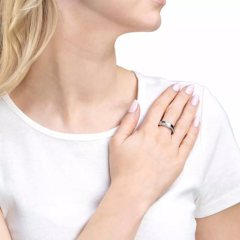 Ovaj Leonardo prsten je moderan i svestran dodatak kako vašem nakitu tako i outfitu. Može se lako kombinovati sa setom Norma, kompletom Anouka ili setom Lena, na primer. Donja polovina prstena je ukrašena svetlucavim nizom prozirnog, fasetiranog kubnog cirkonijuma, koji daje komadu suptilan sjaj. Veličina prstea je 57.