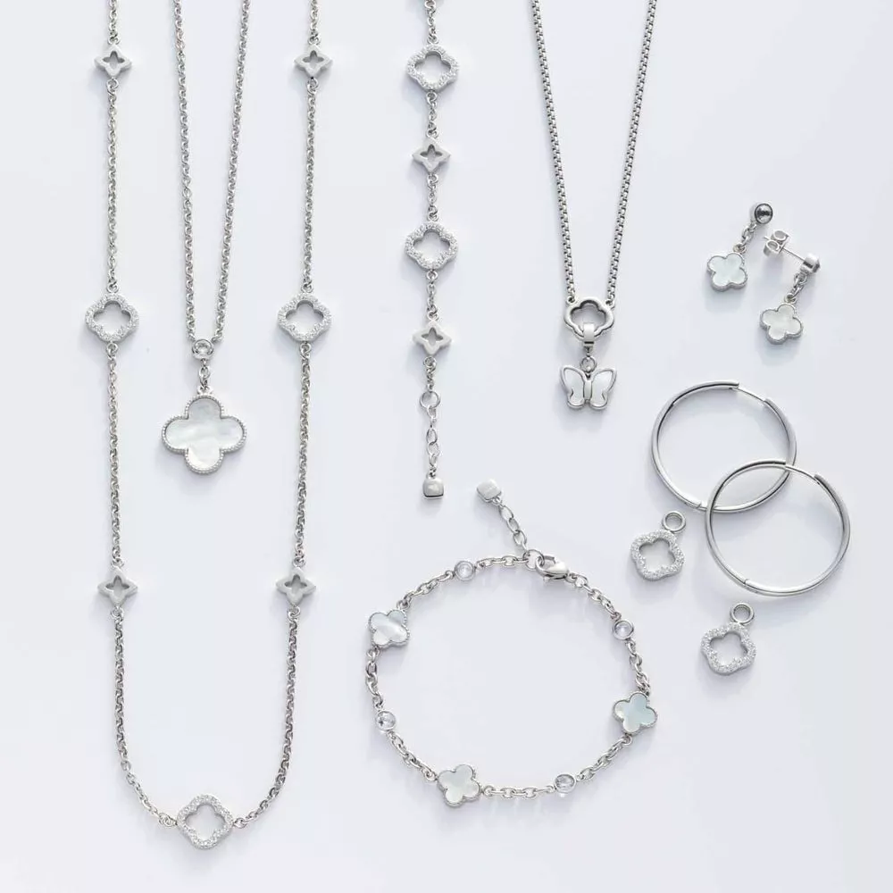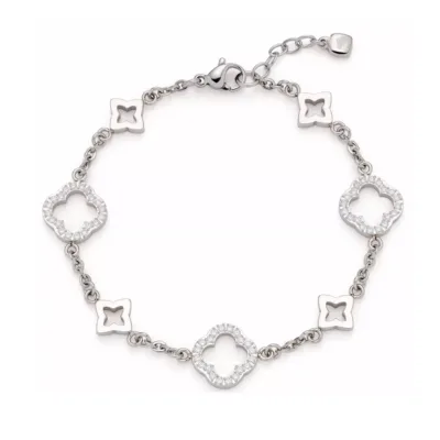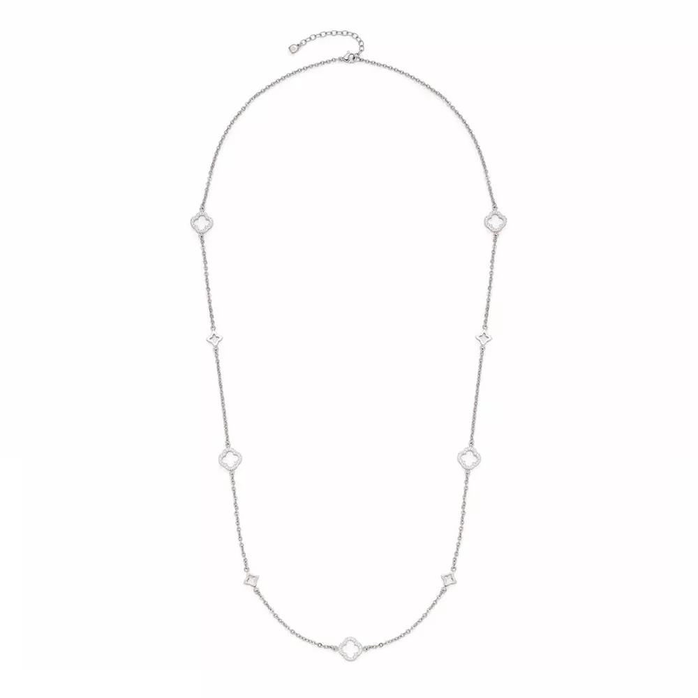 Deteline sa četiri lista su retke i predstavljaju srec´u. Srec´a je što žene lako mogu da je okače oko vrata u ovoj Leonardo ogrlici. Vec´i, otvoreni elementi od listova deteline sadrže fasetirane kristale i smenjuju se sa manjim otvorenim i dekorativnim elementima. Dužina ogrlice čini je savršenom za moderne kombinacije uklapanja, ali i daje ženstveni šarm kada se nosi sama.