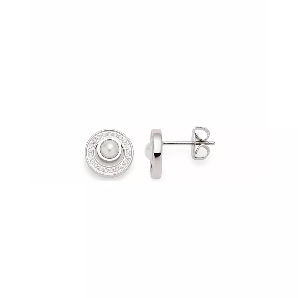 Diskretne i efektne Leonardo minđuše interesantnog dizajna sa fasetiranim kristalima svuda oko bisera prelamaju svetlost stvarajući prelepi efekat sjaja.