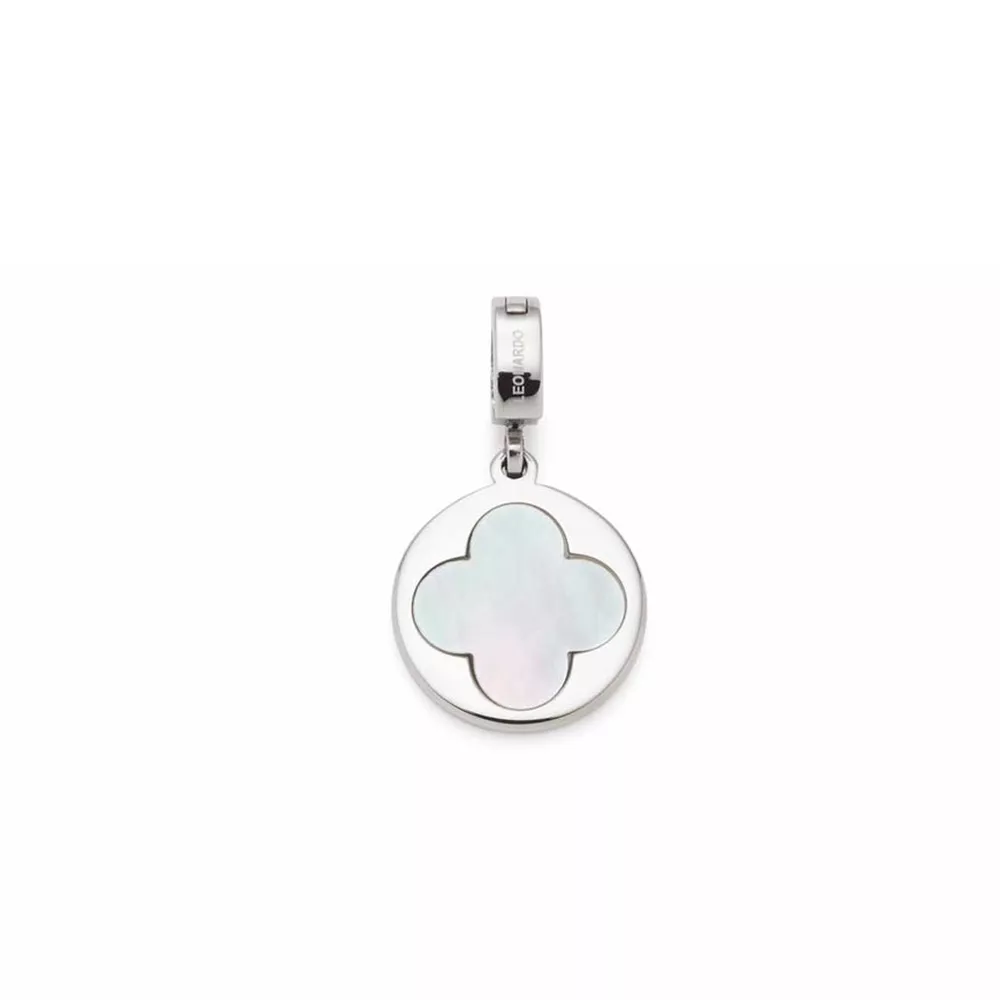 Mali Leonardo privezak napravljen od poliranog nerđajuc´eg čelika i finog svetlucavog sedefa, ima stilizovan motiv lista deteline na prednjoj strani. Suptilan je izraz stila i individualnosti. Dimenzije priveska su 2.1×0.6cm.