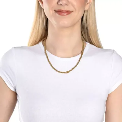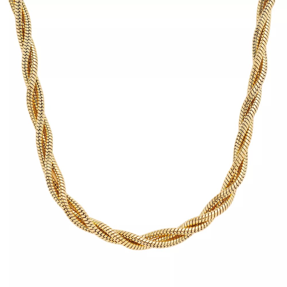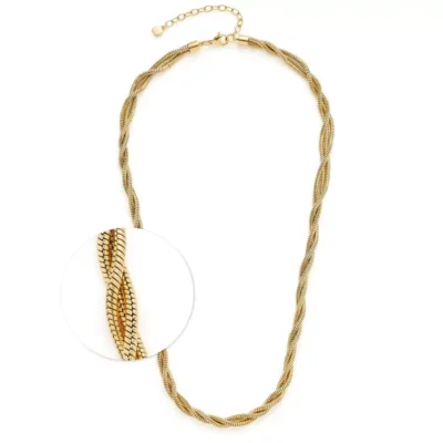 Zadržana, a ipak upečatljiva – ova ogrlica pruža ti bezbroj mogućnosti stilizovanja. Bilo da je kombinuješ uz elegantne, sportske ili klasične autfite, ogrlica od pozlaćenog nerđajućeg čelika savršeno se uklapa. Tri nežno uvijene „zmijaste“ ogrlice stvaraju atraktivan izgled u stilu pletenog užeta. Prijatno leži na koži, a zahvaljujući lančiću za produžavanje, lako se prilagođava željenoj dužini. Bilo da je nosiš samu ili upotpunjenu ličnim priveskom – ova ogrlica je savršen izbor za svaki dan.