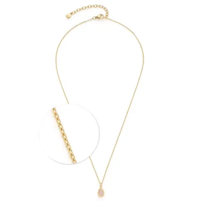Pronađi ovaj nežni komad nakita koji odiše čistom elegancijom! Lančić sa ogledalnim anker karikama i pokretnim priveškom u obliku suze pravi je magnet za poglede. Matirano staklo nežno roze boje, sa facetiranim brušenjem, prelepo hvata svetlost i tvom stilu daje posebnu notu. Savršen je za nežan i ženstven izgled.
