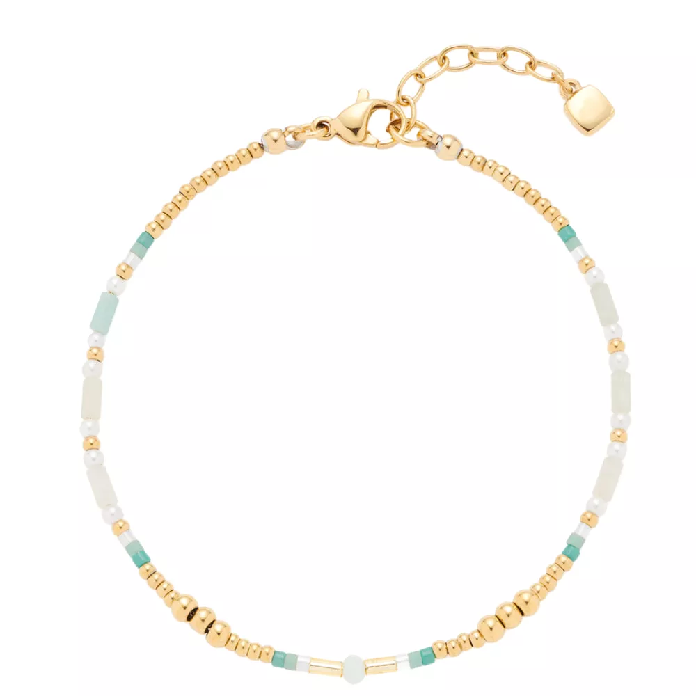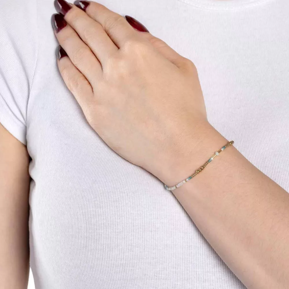 Ova narukvica donosi letnju svežinu na tvoje zapešće. Nježne nijanse bele i tirkizne boje, u kombinaciji sa imitacijom bisera prirodnog izgleda, stvaraju prozračan i lagan stil – savršen za tople dane. Višenamenski modni detalj koji se lako kombinuje i tvom stilu dodaje nežnu notu boje. Upotpuni omiljene odevne kombinacije ovim letnjim akcentom!