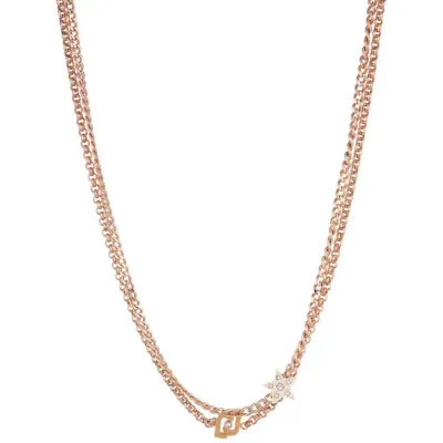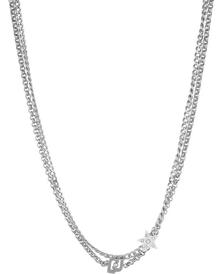 Ženska ogrlica poznatog Italijanskog modnog brenda Liu Jo. Izrađena je od nerđajućeg čelika u boji srebra i sastoji se od dva lanca. Njen dizaj krase privezci koji na sebi nosi logo brenda i zvezdice na kome su kristali.