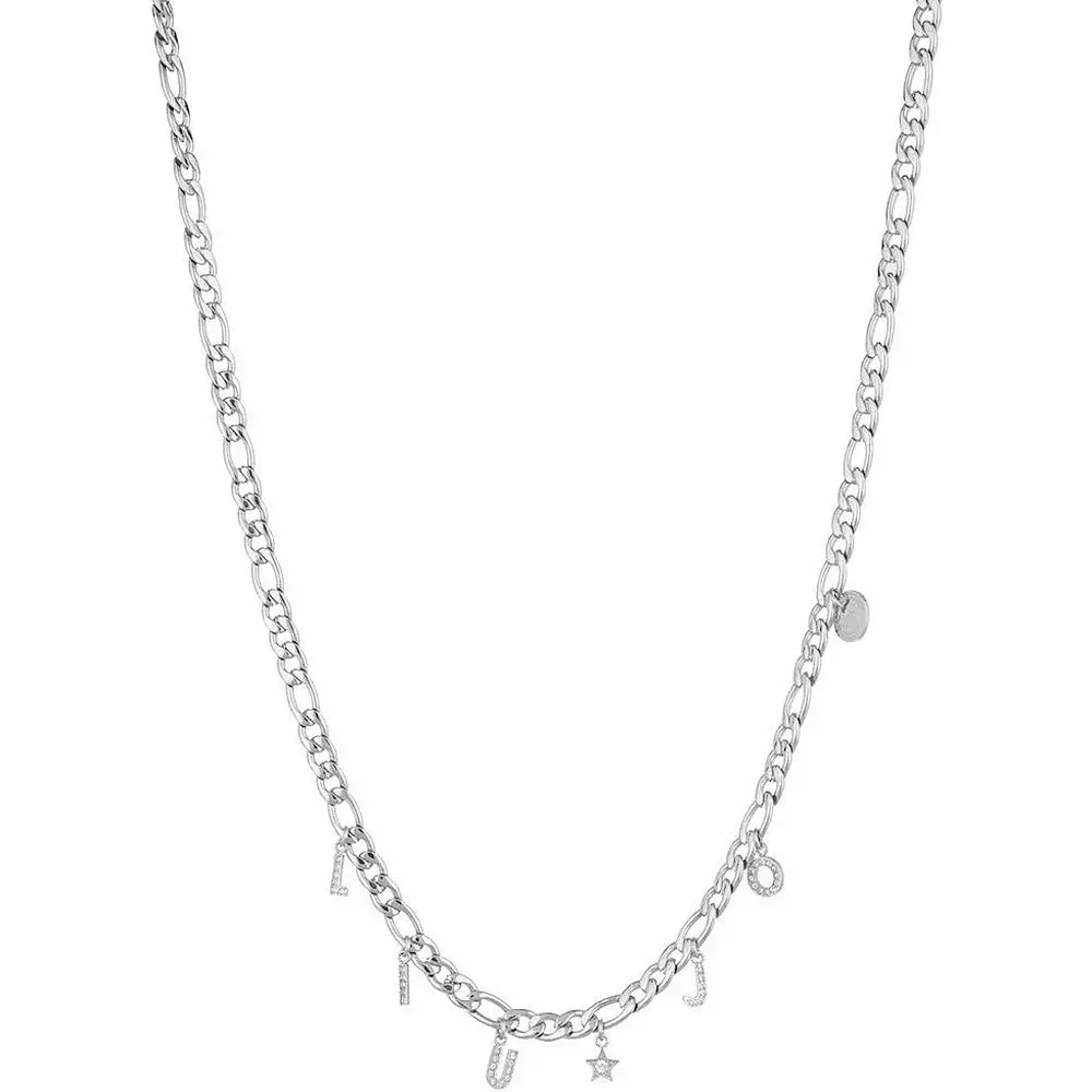 Ženska ogrlica italijanskog brenda Liu Jo izrađena od nerđajućeg čelika u boji srebra sa privescima na kojem su istaknuta slova naziva brenda i privezak u obliku zvezdice. Dužina ogrlice je 40cm i napravljena je od hirurskog čelika. Pogodna je za svakodnevno nošenje.