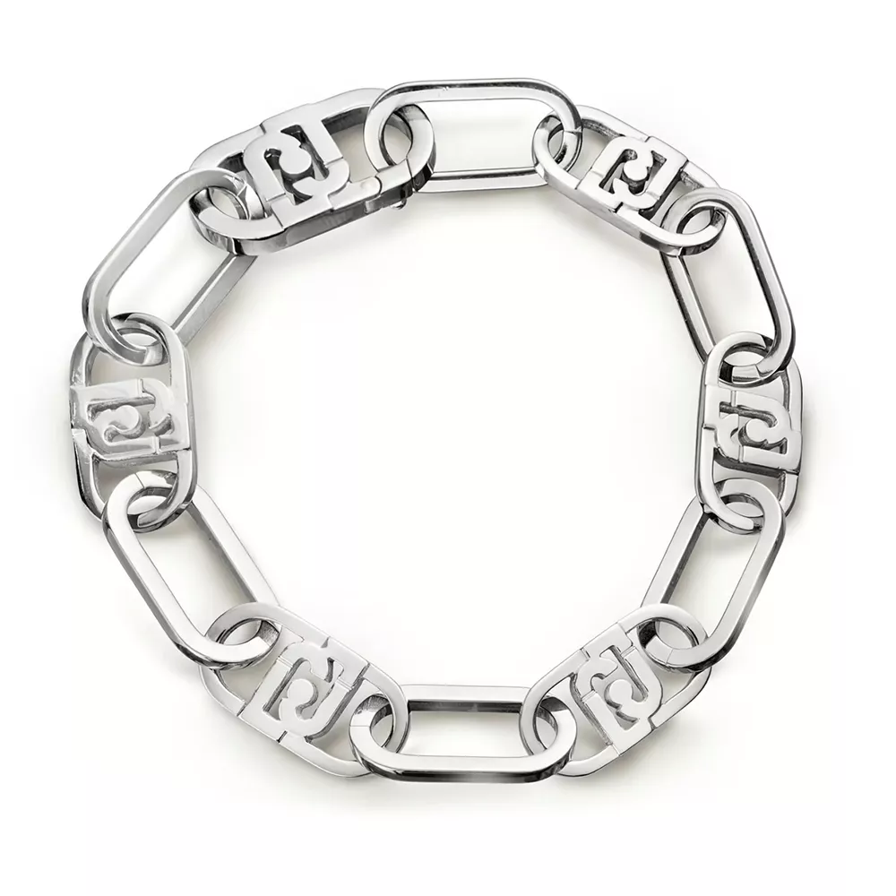 Ženska narukvica brenda Liu Jo sastoji se iz logotipa koji su nežno povezani u niz i lepo prate liniju zgloba.