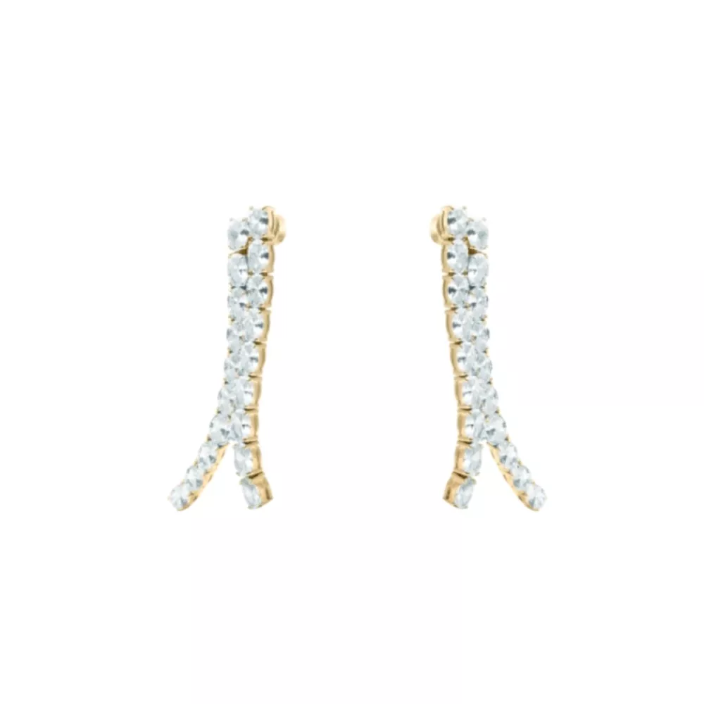 Ženske minđuše Liu Jo iz kolekcije Essential Woman, izrađene od čelika u boji žutog zlata sa visećim cirkonima u stilu "tenis". Dužina minđuša je 6,3 cm. Zatvaranje je na iglu sa silikonskim osiguračem iznutra.