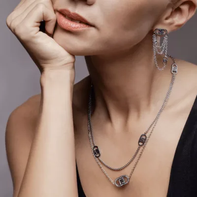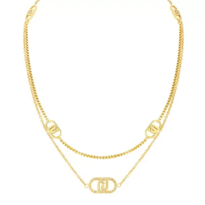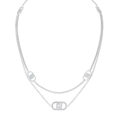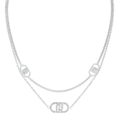 Pokažite svetu svoju ljubav prema modi na elegantan i sofisticirani način sa ogrlicom Liu Jo sa duplim lancem i privescima u obliku logotipa brenda ispunjenim diskretnim kristalima.