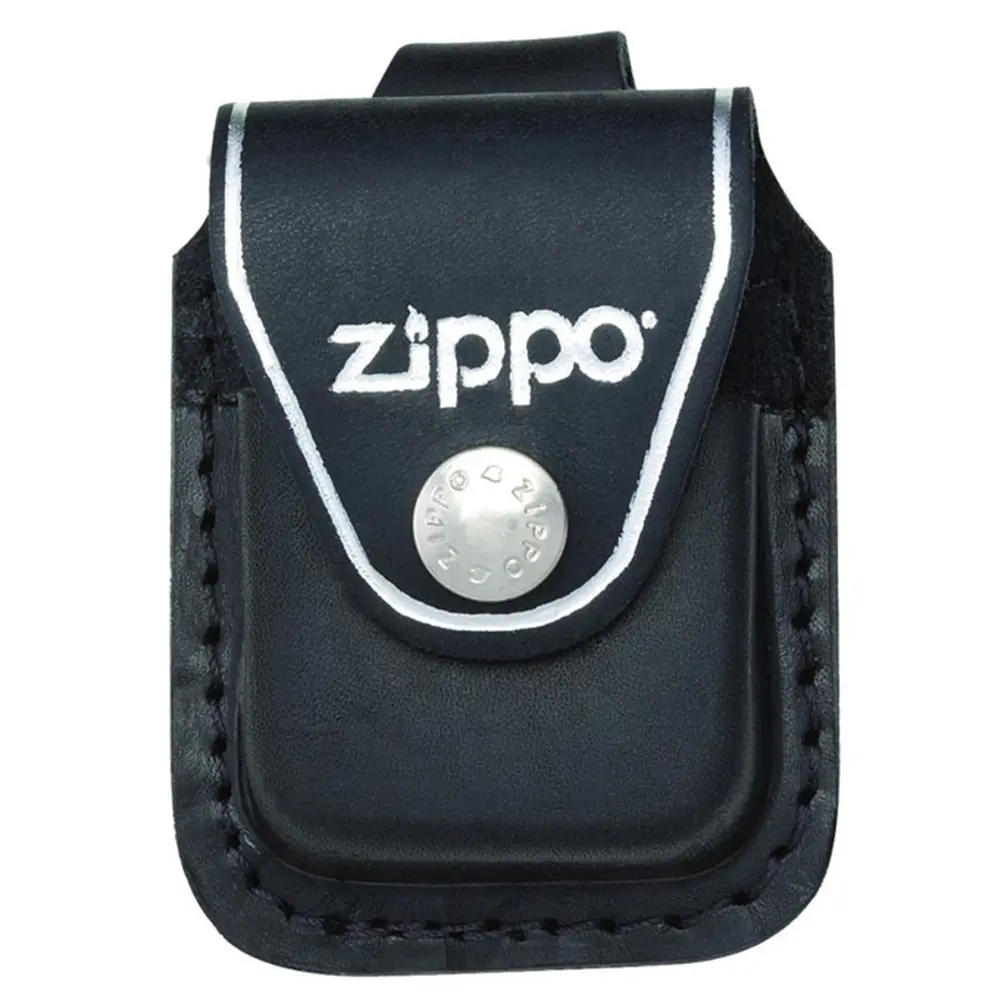 Crna kožna futrola za nošenje Zippo upaljača svih vrsta.Utisnut Zippo logo sa prednje strane i kopča za zatvaranje i bezbedno držanje. Na poleđini futrole nalazi se džepni držač koji se lako kači za pojas ili džep. Isporučuje se u originalnoj Zippo kutiji.