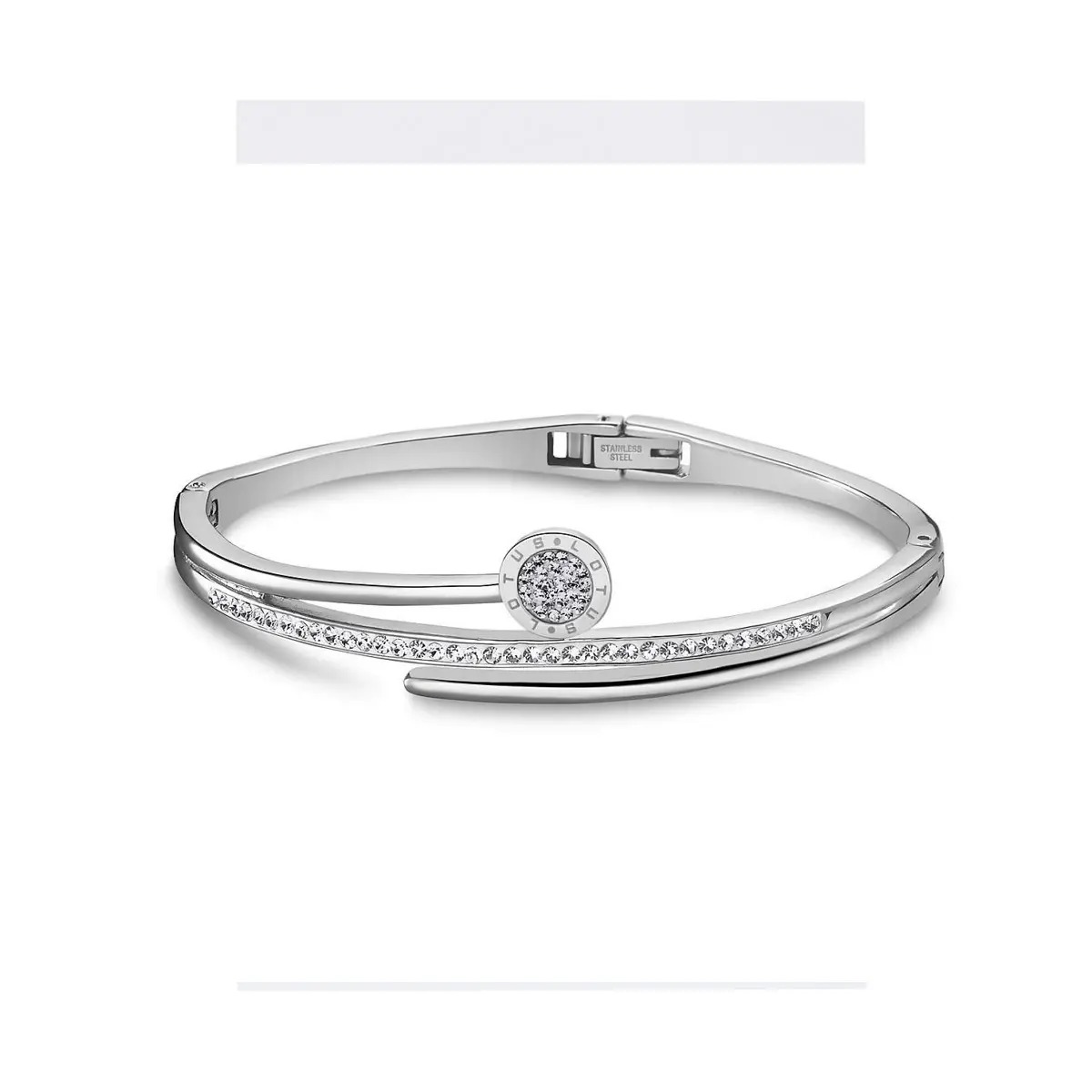 Ženska narukvica brenda Lotus izrađena od hirurškog čelika. Karakteriše je čvrsta forma upotpunjena malim krugom koji je ukrašen cirkonima koji čine ovaj model atraktivnim i pogodnim za svakodnevno nošenje.
