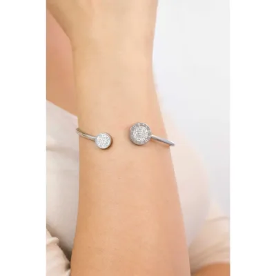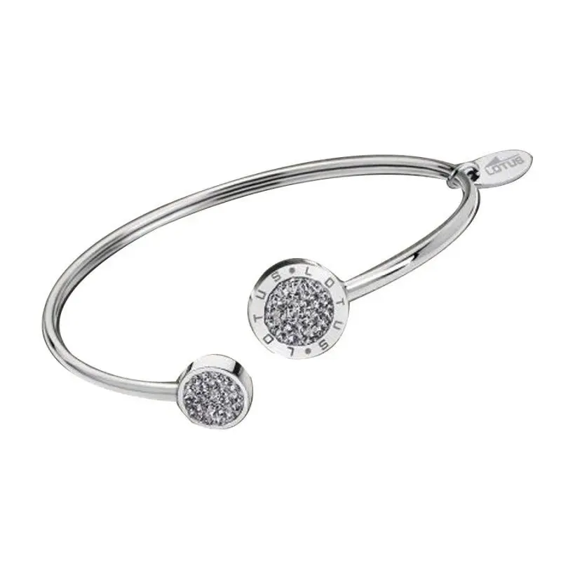Atraktivna ženska narukvica španskog brenda Lotus iz kolekcije Bliss. Moderna narukvica otvorenog tipa od nerdjajućeg čelika u srebrnojboji ukrašena diskretnim cirkonima. Nesvakidašnji dizajn ovom modelu daje jedinstven mladalički izgled savršen za kombinovanje.