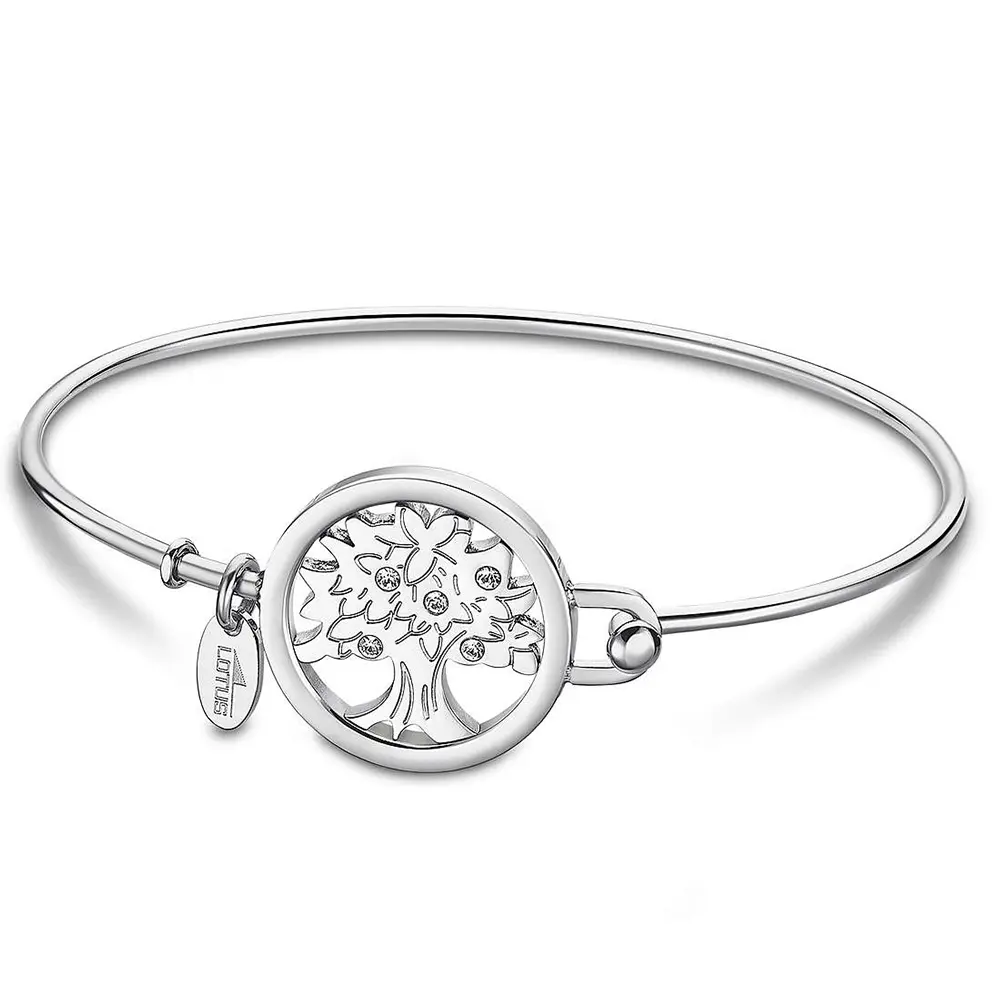 Elegantna čvrsta ženska narukvica brenda Lotus iz kolekcije Millennial. Ono što ovu narukvicu čini posebnom i romantičnom je privezak u obliku drveta života upotpunjen cirkonima koji joj pružaju svetlucav sjaj . Nežna je i posebna, namenjena damama sa stilom.