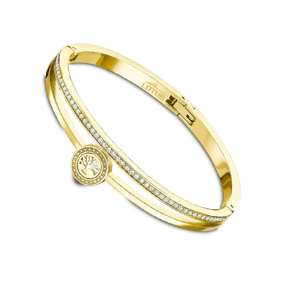 Elegantna čvrsta ženska narukvica brenda Lotus. Ono što ovu narukvicu čini posebnom i romantičnom je privezak u obliku drveta života upotpunjen cirkonima koji joj pružaju svetlucav sjaj . Nežna je i posebna, namenjena damama sa stilom.