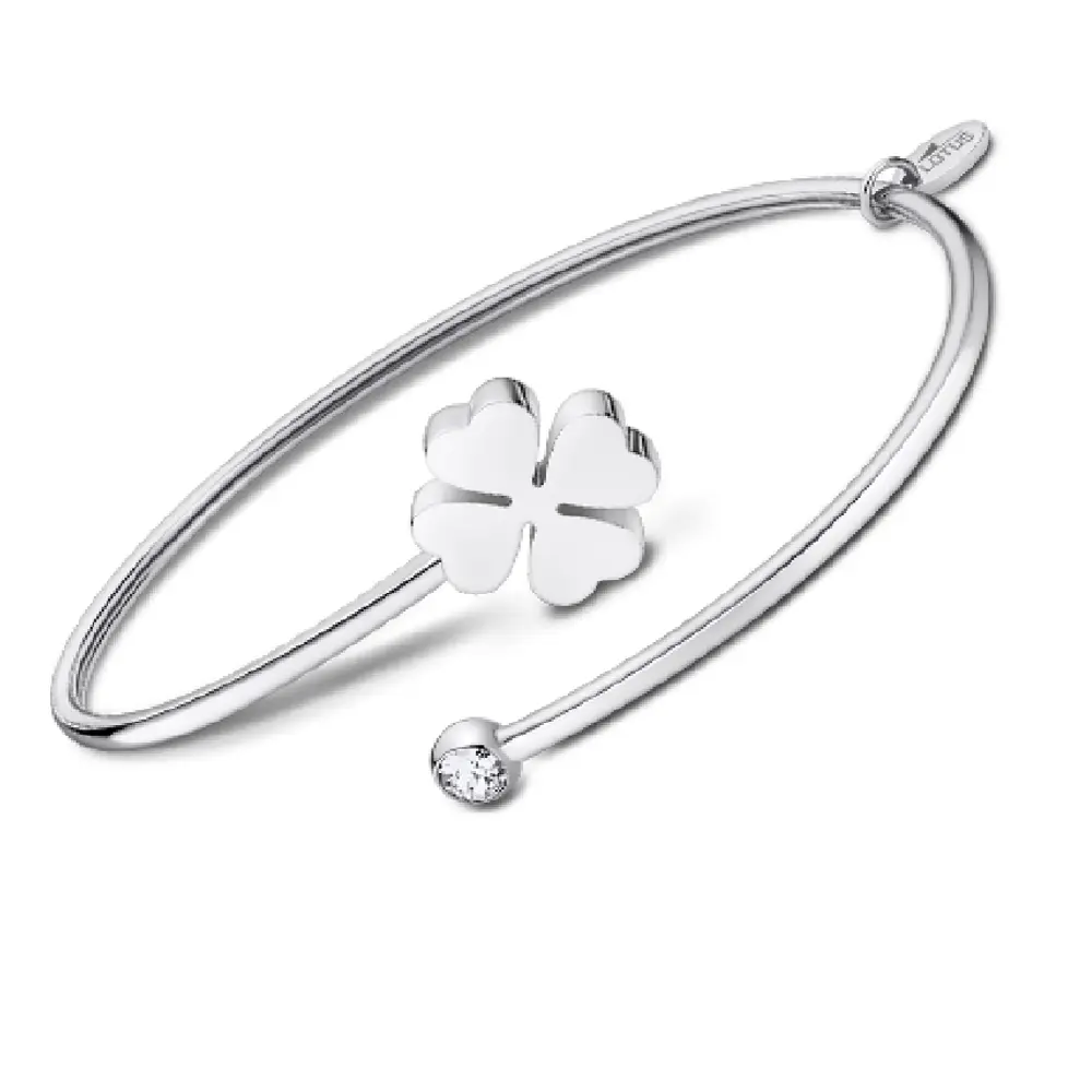 Lotus ženska narukvica od čelika upotpunjena detelinom sa četiri lista.