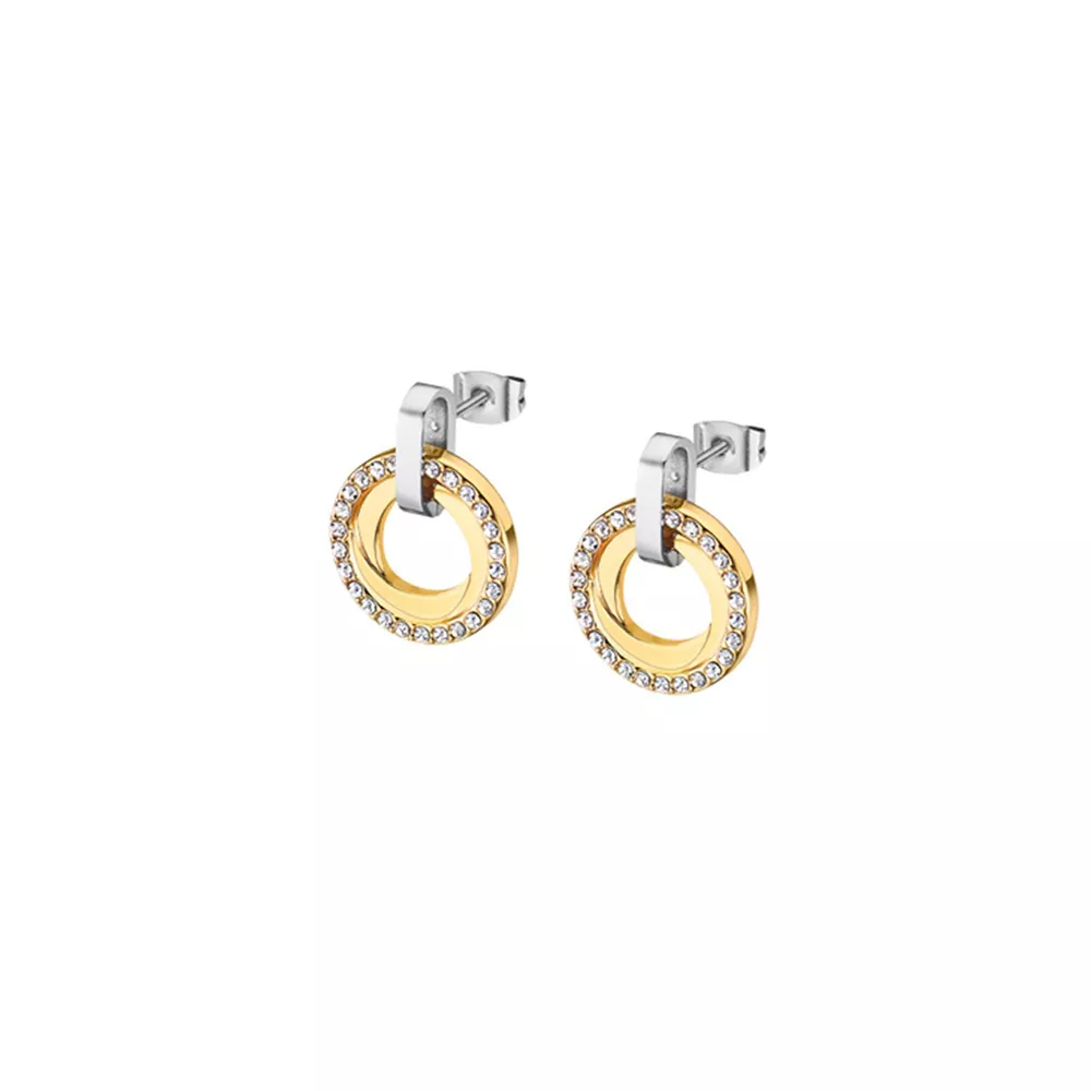 Ženske minđuše brenda Lotus od nerđajućeg čelika zlatne boje sa belim cirkonima.