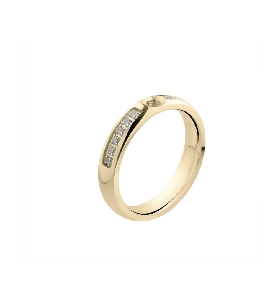 Osnova za prsten u srebrnoj boji sa jednim redom cirkona po 6 komada, smeštenih sa obodu prstena, holandskog brenda MelanO Colors se može prilagoditi vašem raspoloženju ili trenutnoj odevnoj kombinaciji pomoću zamenjivih elemenata ili kamenčića iz naše bogate ponude.