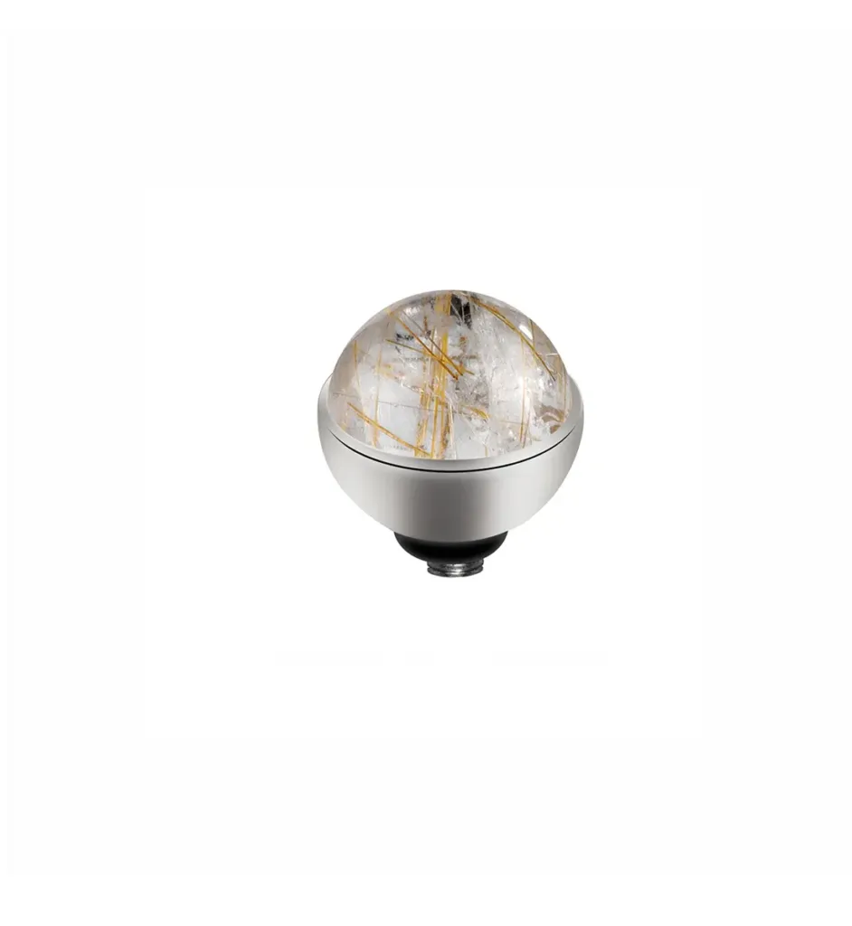 Kamenčić u srebrnoj osnovi sa providnim kvarcom koji sadrži crne trakice – poludragim kamenom, holandskog brenda MelanO Colors se može lako zameniti u osnovu elementa, bilo da je to prsten, minđuše ili narukvica i prilagoditi vašem raspoloženju ili trenutnoj odevnoj kombinaciji.