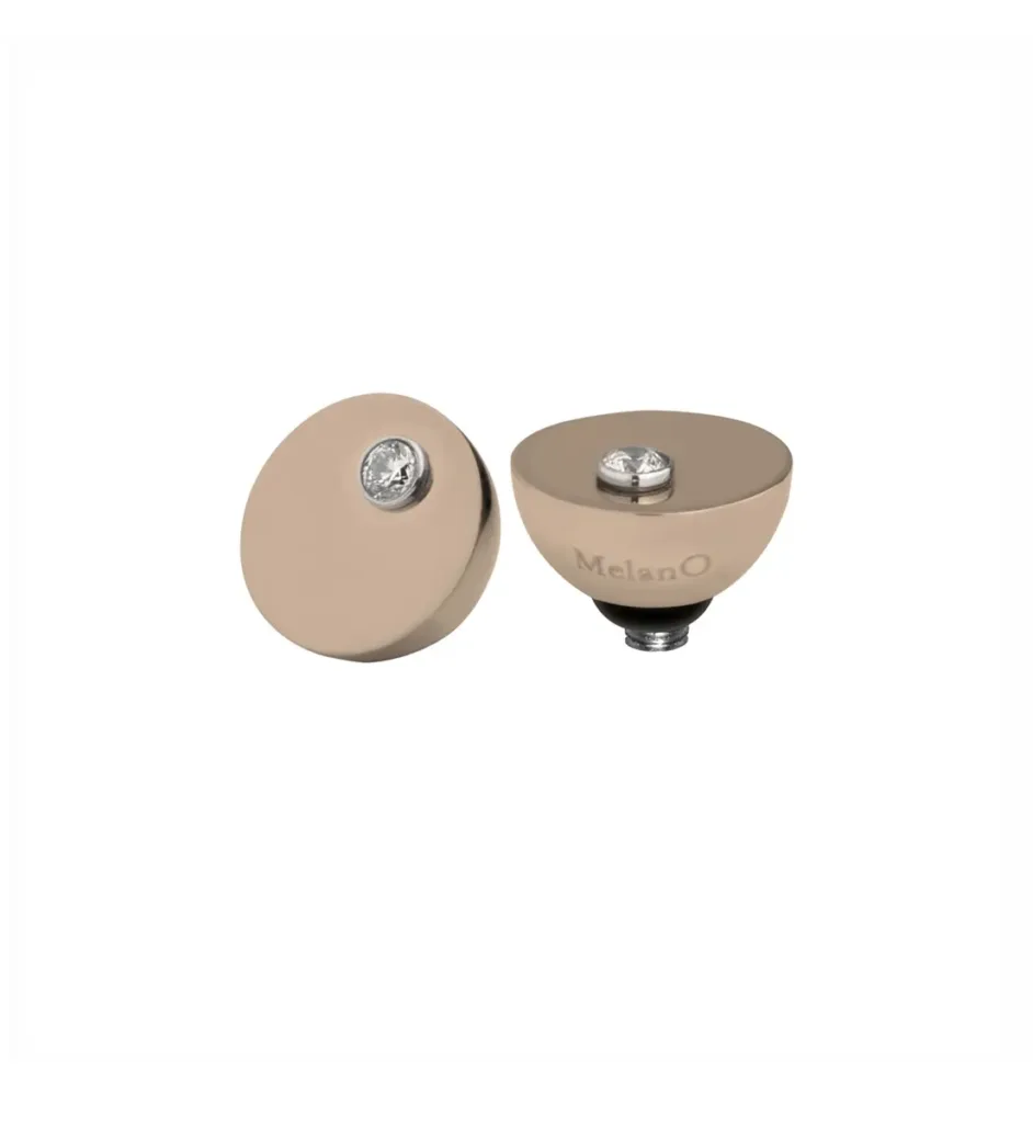 Kamenčić osnove roze-zlatne boje sa transparentnim kristalčićem, holandskog brenda MelanO Colors se može lako zameniti u osnovu elementa, bilo da je to prsten, minđuše ili narukvica i prilagoditi vašem raspoloženju ili trenutnoj odevnoj kombinaciji.