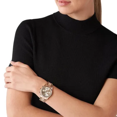 Ženski sat brenda Michael Kors iz kolekcije Lexington, elegantan i sofisticiran. Dizajniran je u klasičnim linijama sa svedenim kućištem i kvalitetnom čeličnom narukvicom u boji roze zlata. Brojčanik je ukrašen logotipom brenda i rimskim indeksima. Sat je namenjen mladim damama sa izgradjenim stilom.