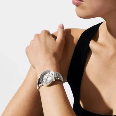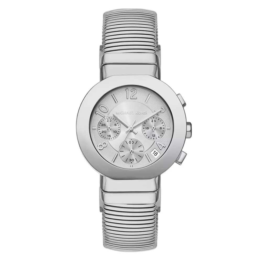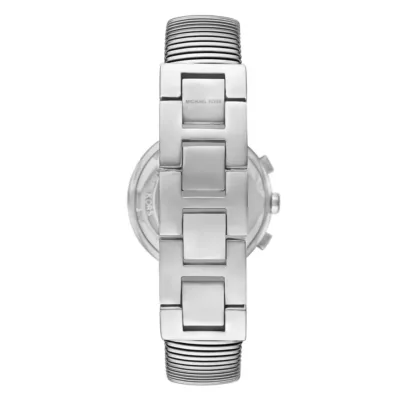 Ženski sat Michael Kors iz serije Gramercy savršeno spaja stil i funkcionalnost. Srebrno kućište izrađeno je od nerđajućeg čelika, dok je brojčanik u istoj nijansi zaštićen mineralnim staklom. širina kućišta od 36 mm daje satu suptilan, ali prepoznatljiv karakter. Narukvica, takođe od nerđajućeg čelika, savršeno se uklapa u celokupan dizajn i naglašava njegov moderan izgled. Vodootpornost do 50 metara čini ga pogodnim za svakodnevno nošenje.
