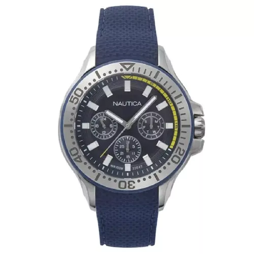 Originalan dizajn muškog sata brenda Nautica, kombinuje funkcionalnost i preciznost sa sportskim dizajnom. Kućište od nerđajućeg čelika i pregledan plavi brojčanik u kombinaciji sa plavom silikonskom narukvicom obezbeđuju savršenu udobnost. Modeli iz ove kolekcije lako se uklapaju sa različitim odevnim kombinacijama a namenjeni su pre svega sportistima.