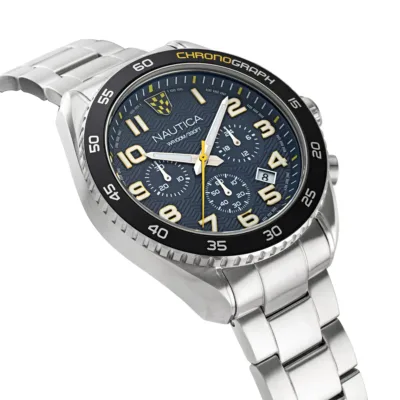 Originalan dizajn muškog sata brenda Nautica, kombinuje funkcionalnost i preciznost sa sportskim dizajnom. Kućište od nerđajućeg čelika i pregledan crni brojčanik u kombinaciji sa čeličnom narukvicom obezbeđuju savršenu udobnost. Modeli iz ove kolekcije lako se uklapaju sa različitim odevnim kombinacijama a namenjeni su pre svega sportistima.
