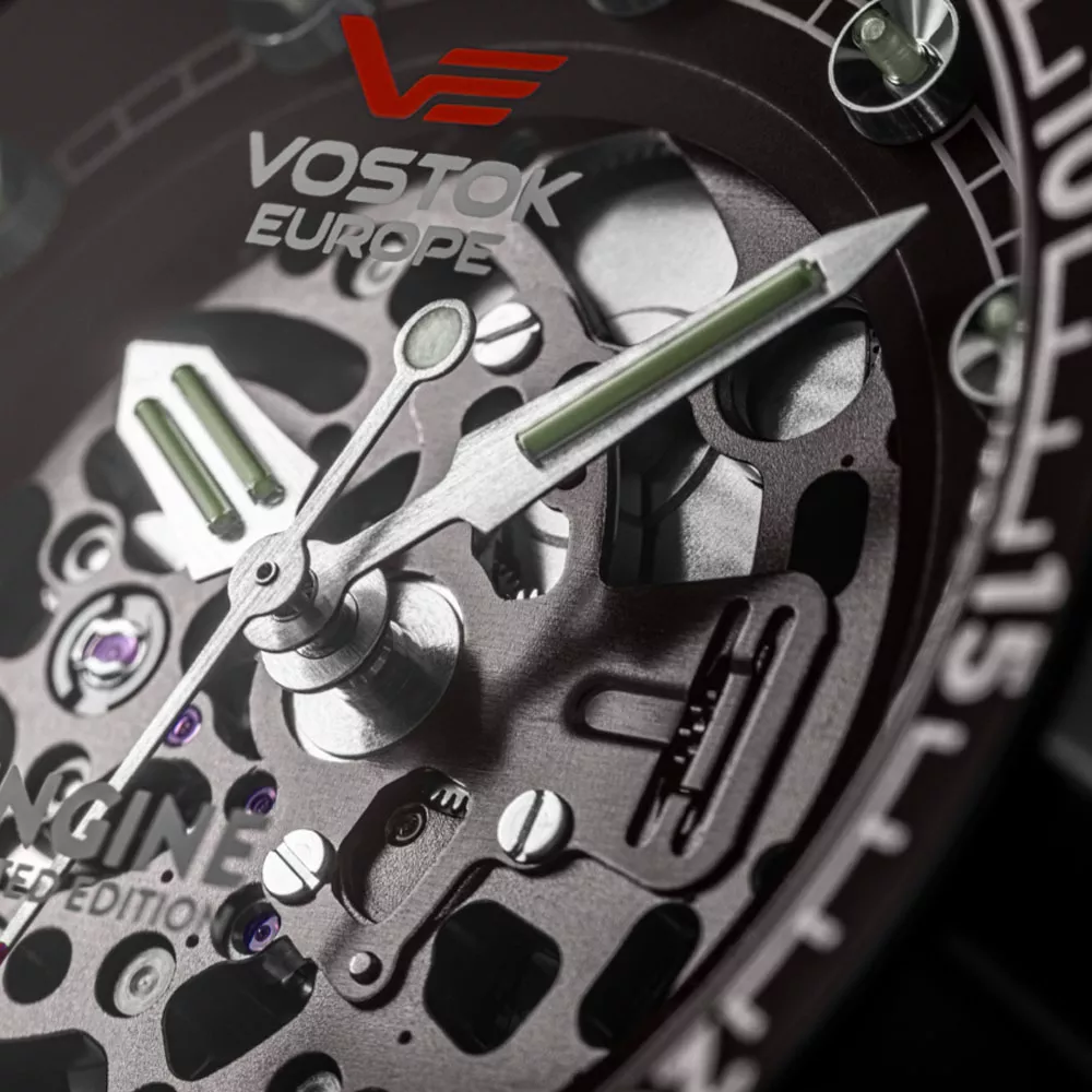 "Engine" prvi skelet satovi ikada proizvedeni u Vostok Europe. Nova linija satova zasnovana je na novom automatskom mehanizmu NH72. Skeletni mehanizam presvučen je rutenijumom,retkim metalom koji pripada grupi platine,korišćen u izradi luksuznih proizvoda. Kućište sata je izrađeno od visokokvalitetnog nerđajućeg čelika. Sat upotpunjuje crna silikonska narukvica uz dodatak ručno rađene italijanske kožne narukvica i odvijačem za zamenu kaiša. Kompletan set je upakovan u kolektorovu VE suvu kutiju. Limitirano izdanje 3000 komada.