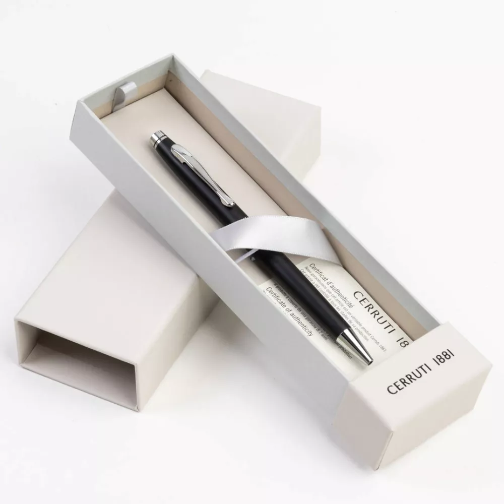 Dodajte dozu elegancije svom radnom stolu uz Cerruti hemijsku olovku. Sa mat crnom završnom obradom i prefinjenim metalnim akcentima, ovaj luksuzni instrument za pisanje odiše stilom i suptilnim luksuzom. Tanka i savršeno izbalansirana za udobno pisanje, olovka je ukrašena prepoznatljivim Cerruti logotipom na klipsi što je simbol prefinjenosti i pažljivo promišljenog dizajna.
