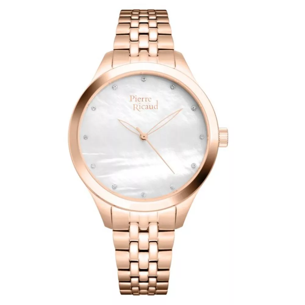 Ženski ručni sat brenda Pierre Ricaud. Kućište je od čelika u boji rose gold, u kombinaciji sa belim brojčanikom koji nosi elegantne cirkone u funkciji satnih indeksa. Podržava ga čelična narukvica u rose gold boji koja pruža udobnost prilikom nošenja. Elegantan sat koji možete nositi svaki dan.