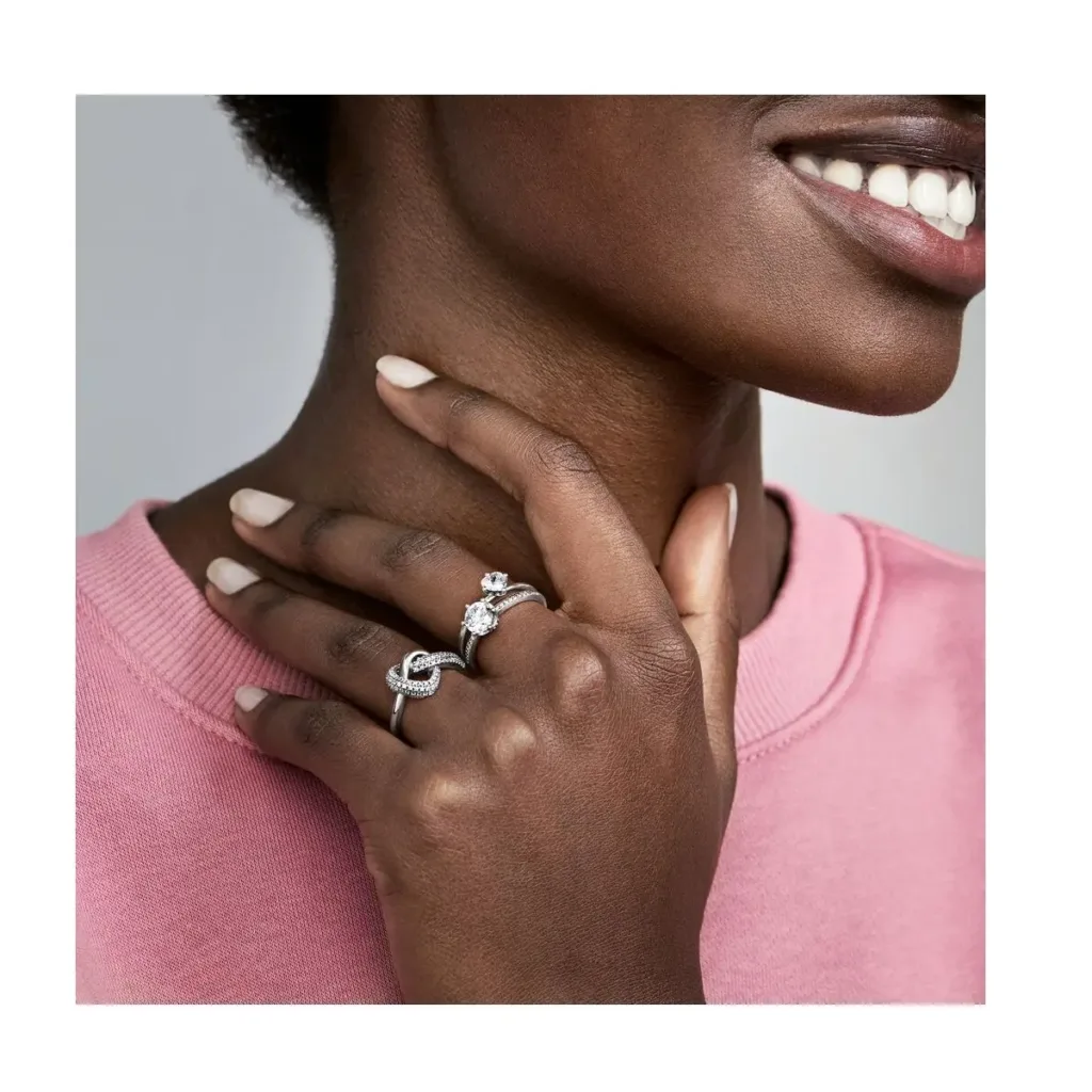 Nosite bezvremensku lepotu ljubavi na Vašim prstima uz ovaj prsten izrađen od srebra. Upečatljivo srce ukrašeno svetlucavim kamenčićima i glatkim srebrnim delom privlačan je simbol ljubavi.