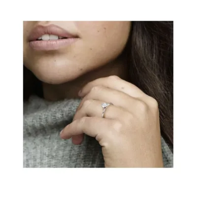 Ovaj prsten Prozirno srce sa jednim kamenom nosi simbol obećanja: jedan prozirni kockasti simbol u obliku srca. Savršen kao poklon za voljenu osobu, ovaj srebrni prsten nudi simbol jednog srca – Vašeg srca – osobi koja nosi prsten da ga voli i čuva. Pažljivo pogledajte prsten sa srcem i videćete zupčasto utisnute obrise nacrtanog srca. Ovaj prsten se dobro slaže sa drugim prstenjem iz ove kolekcije, unoseći malo svetlucavosti u Vašu svakodnevicu.