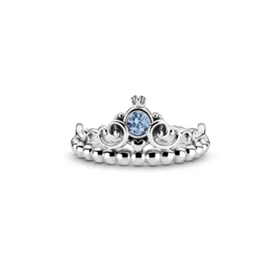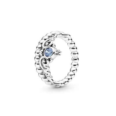 Sa prstenom Disney, Pepeljuga i plava tijara bićete spremni za bal. Dizajniran u čast 70. godišnjice Disney Pepeljuge, ovaj prsten je ručno završen od srebra. Prsten u obliku princezine tijare sa otvorenim radom ima centralni plavi kamen okružen simetričnim spiralama sa krunom na vrhu i srcem ispod. Niska bisera formira prsten. Ovaj komad možete nositi sa srebrnim minđušama za magičan set.