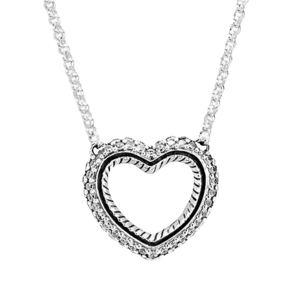 Pokažite svoju ljubav prema klasičnom dizajnu nakita ogrlicom uz vrat sa otvorenim srcem sa pavé teksturom „zmijskog” lanca. Ručno završen od srebra, ovaj komad je inspirisan legendarnim Pandora Moments izborom narukvica od „zmijskog” lanca. Ukrašen prozirnim kockastim cirkonima, oblik otvorenog srca optočen je kamenčićima sa spoljne strane i ima klasičnu teksturu zmijskog lanca sa unutrašnje. Dužina ove ogrlice sa srcem se lako može promeniti da bi se uklopila u Vaš stil.