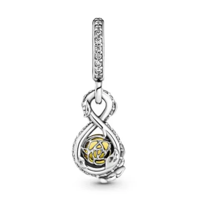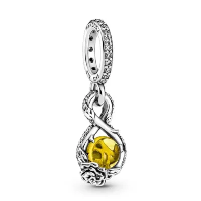Unesi u svoj stil svetlucavost u stilu princeze i izaberi privezak za ogrlicu Disney Belle beskonačnost i ruža. Ovaj srebrni privezak za ogrlicu ima veliki kabošon žuti kristal utisnut u znak za beskonačnost. Znak za beskonačnost je asimetričan i ima složene detalje poput sitnih perlica, trnja i ispupčene ruže (koja se nalazi i na poleđini centralnog kamena). Inspirisan Diznijevom Lepoticom i njenim nezaboravnim stilom i pričom, ovaj privezak za ogrlicu uneće dašak svetlucavog kraljevskog stila u tvoj stil.