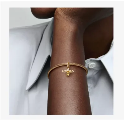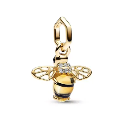 Pokaži da si kraljica viseći priveskom Svetlucava pčelica. Ovaj privezak sa 14k pozlatom svetluca na karici u obliku saća i ima šupljikasta krila koja mu daju život. Telo pčelice je napravljeno od žutog kabošon sintetičkog kristala prekrivenog prugicama od emajla koje privesku daju zlatnu boju meda kada ga obasja svetlost. Prozirni kockasti cirkoni svetlucaju između krila pčelice. Osmišljen da simbolizuje mudrost, obilje i ponovno rađanje, ovaj privezak tvom nakitu daje dodir moći prirode.
