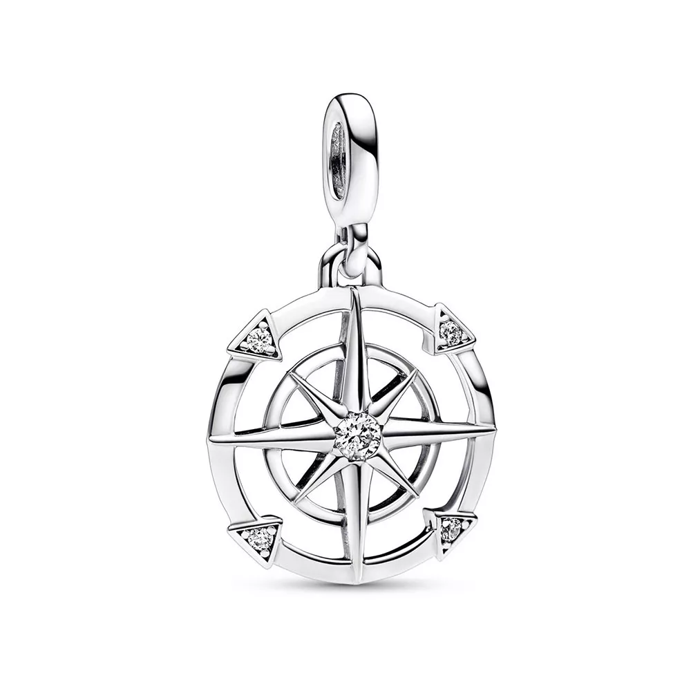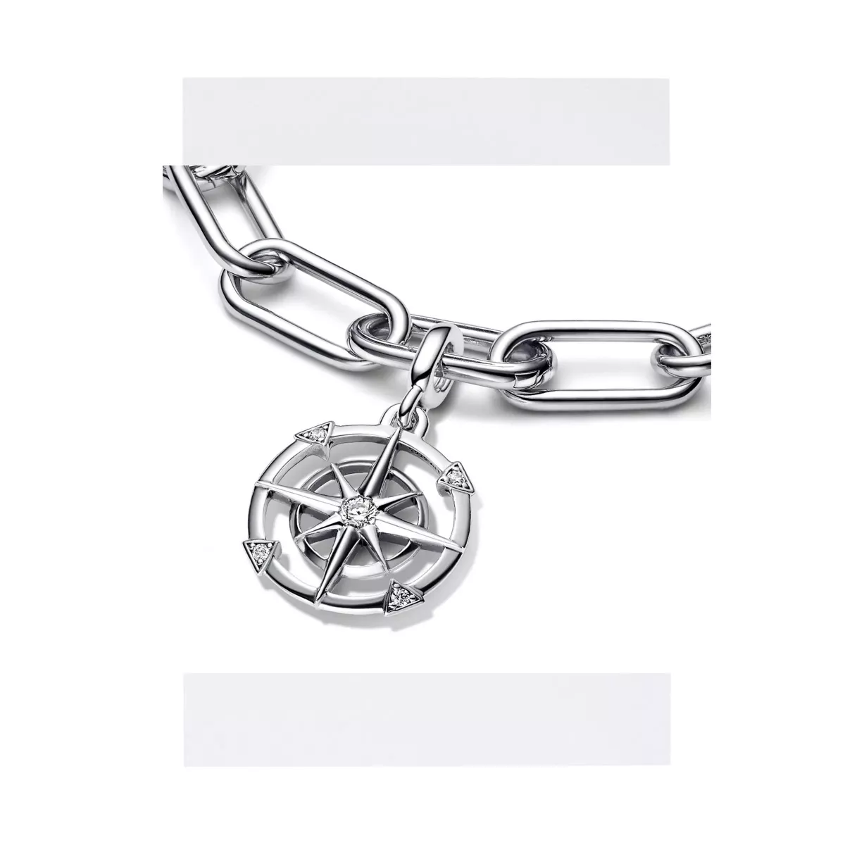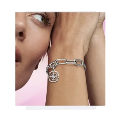 Idi svojim putem sa našim medaljonom Pandora ME Kompas. Izrađen od sjajnog srebra, ovaj ručno završen medaljon ima osam kardinalnih tačaka sa svetlucavim okruglim briljantno brušenim kamenčićima u centru. Karika je napravljena za kombinovanje sa Pandora ME konektorima za stilizovanje koji se otvaraju i alkama. Nosi ovaj medaljon kao podsetnik da imaš moć da biraš svoju budućnost.
