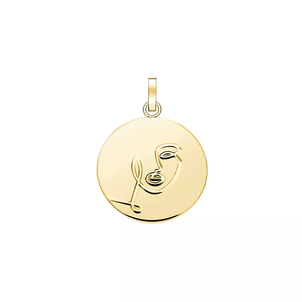 Privezak od nerđajućeg čelika, zlatne boje, okruglog oblika sa motivom horoskopskog znaka – Devica, od brenda Rosefield.