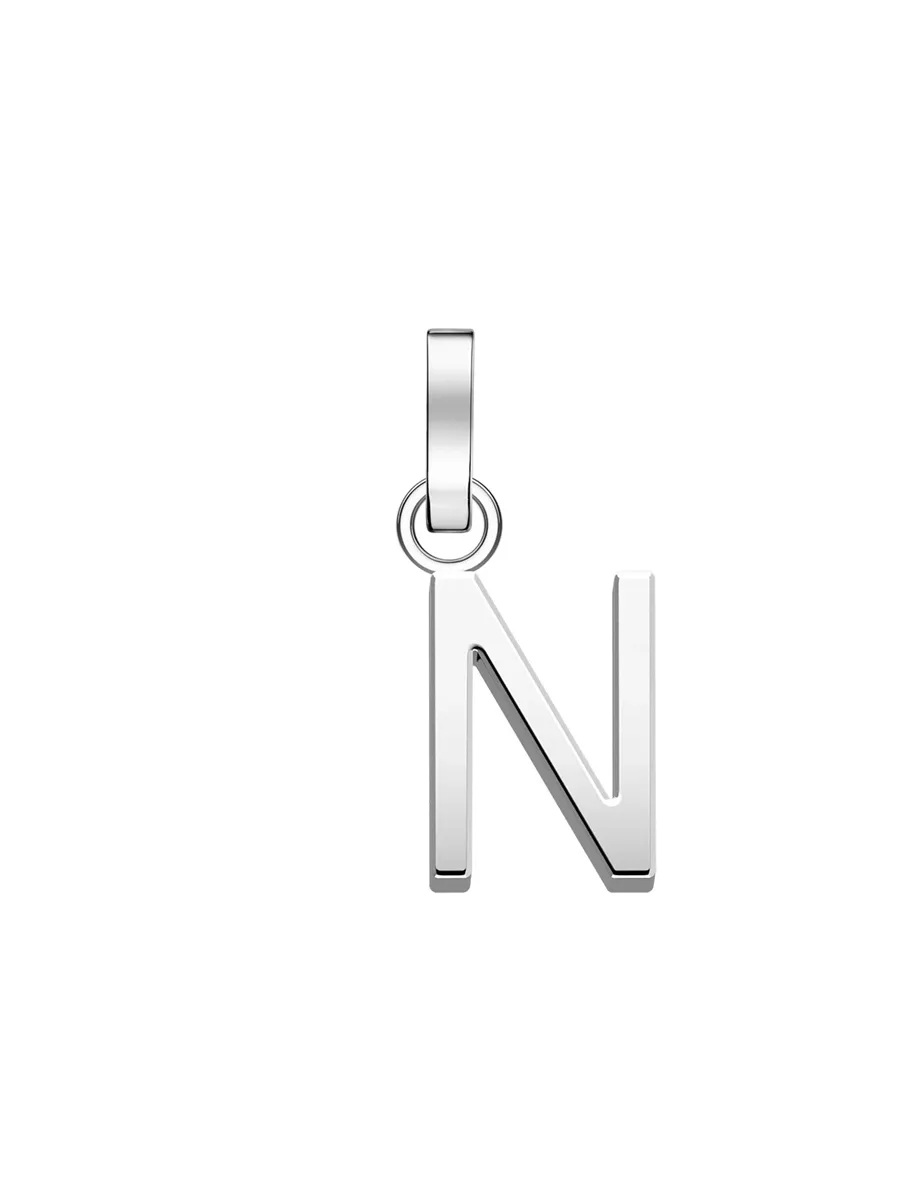 Privezak od nerđajućeg čelika srebrne boje u obliku slova N, brenda Rosefield.