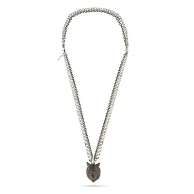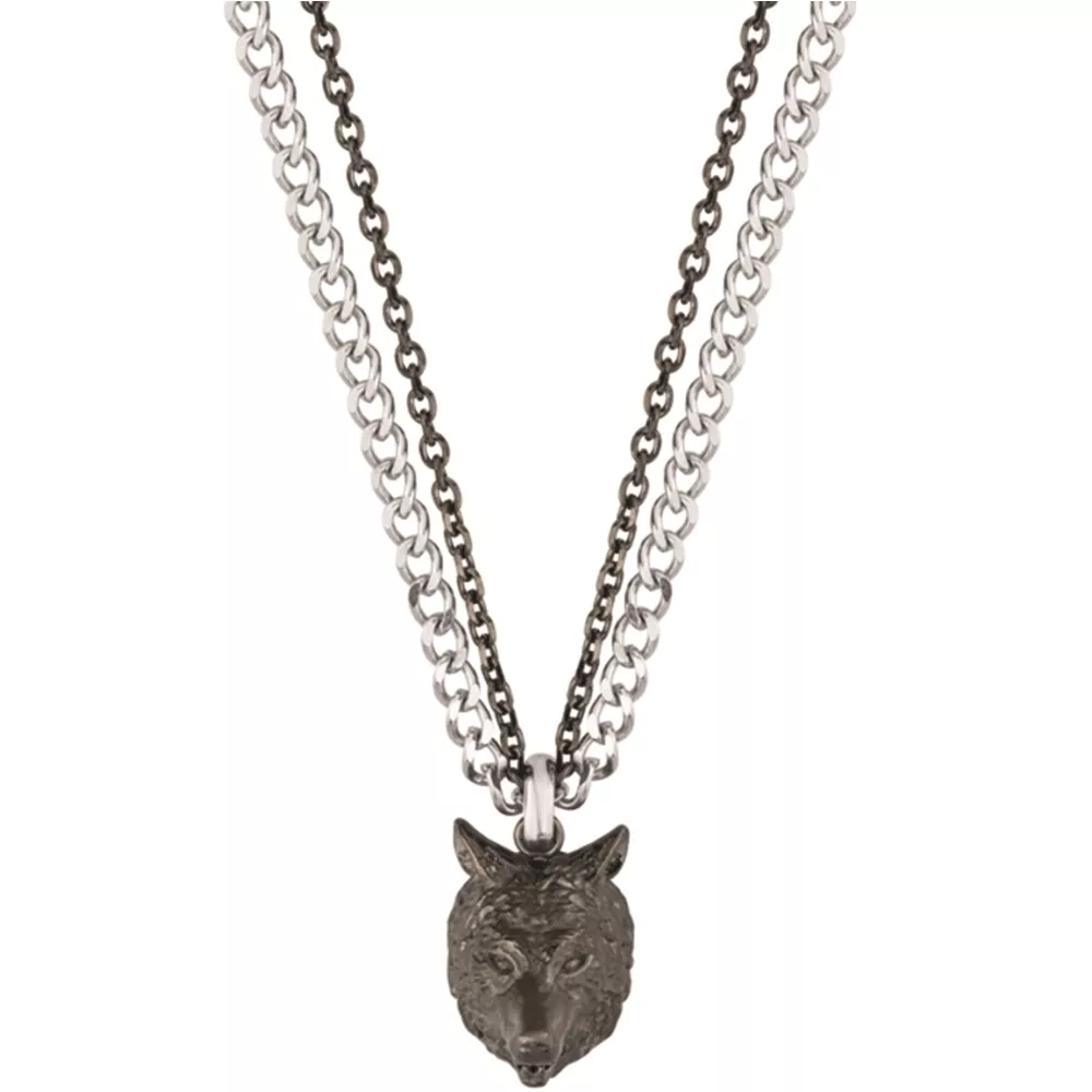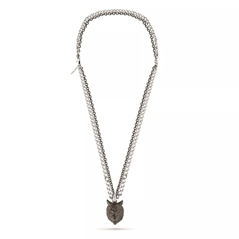 Otkrijte divlji stil pečata, da inspiriše hrabrost! Ova sjajna dvoslojna ogrlica Savage Animalia brenda Police ističe neukrotiv duh i poručuje: "Pazite se!" Veoma muški! Ogrlica od nerđajućeg čelika sa dva lanca u boji srebra i metala sa priveskom glave vuka.