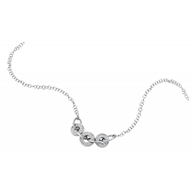 Ženska ogrlica brenda Police izrađena od čelika u boji srebra sa tri kružna priveska sa logom brenda. Pogodna za svakodnevno nošenje.
