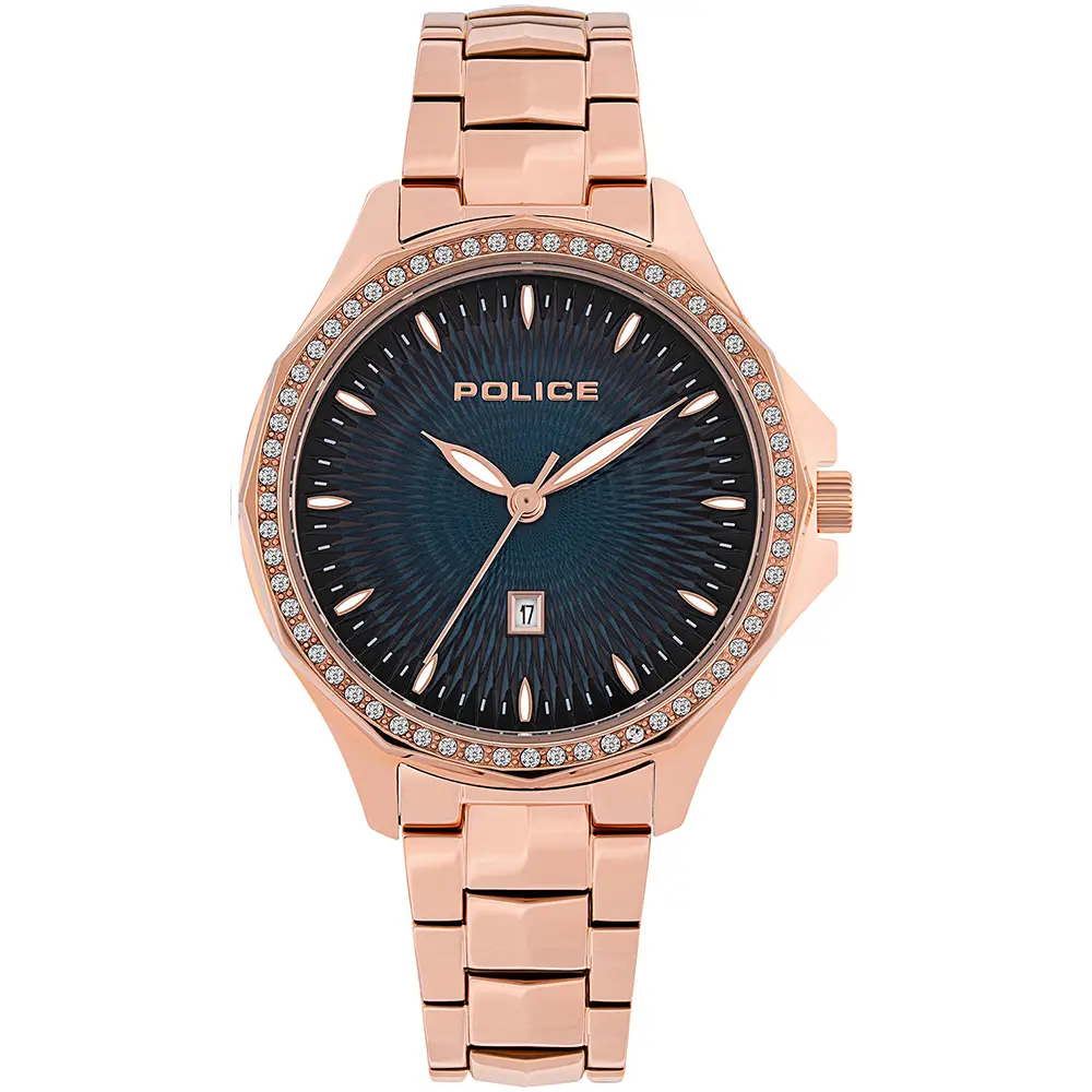 Elegantan ženski ručni sat brenda Police, iz kolekcije Korana poseeuje plavi brojčanik sa gijošem, diskretne kristale smeštene na obodu kućišta i čeličnu narukvicu u roze-zlatnoj boji. Ovaj model predstavlja mešavinu energičnog stila i urbane harizme.